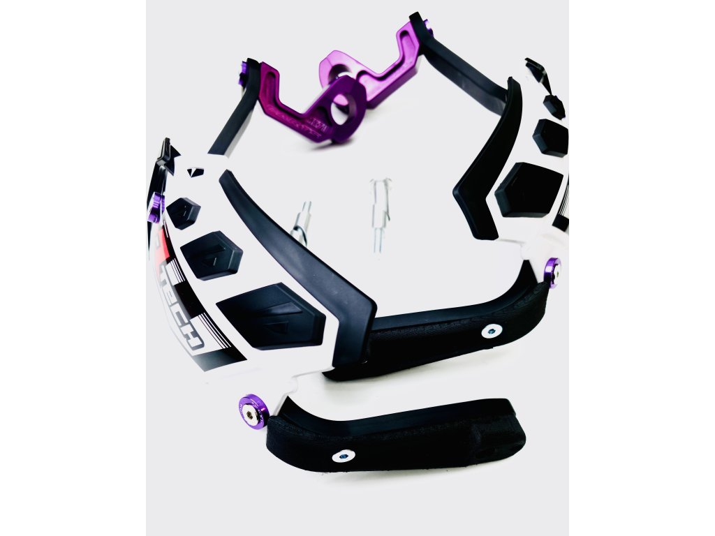 Za příplatek lze vygravírovat jméno / přezdívku / startovní číslo na držáky nebo samotné chrániče.
