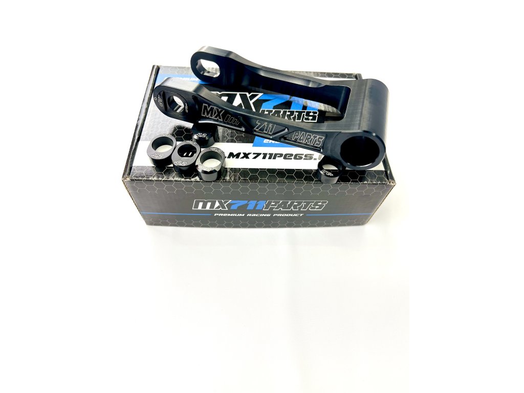 Nastavitelné přepákování MX711Parts pro KTM/Husqvarna/Gasgas verze MX a Supermoto umožňuje snadnou změnu výšky motocyklu díky vyměnitelným vložkám. K dispozici jsou tři typy vložek: záporné hodnoty motocykl zvyšují, kladné hodnoty jej snižují.