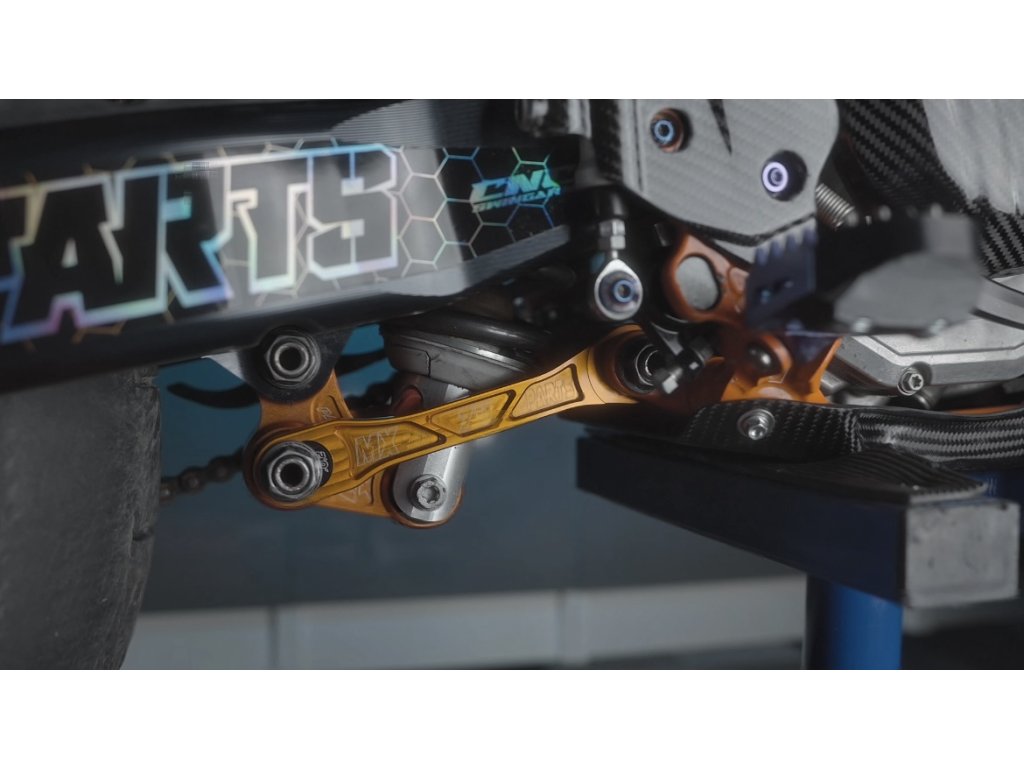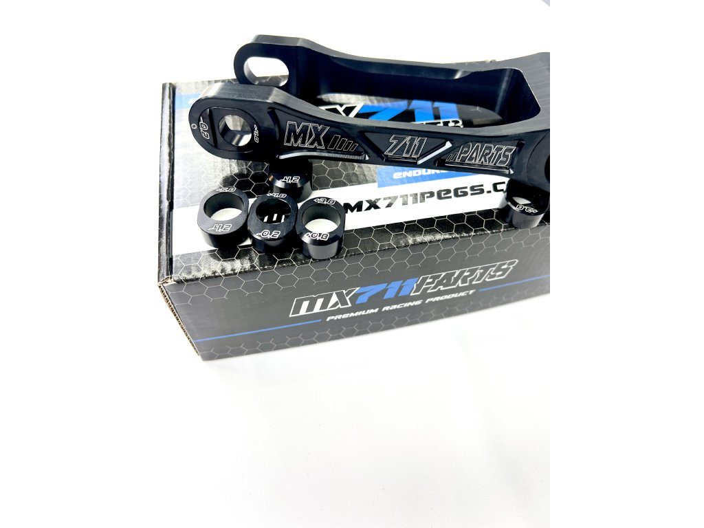 Nastavitelné přepákování MX711Parts pro KTM/Husqvarna/Gasgas verze MX a Supermoto umožňuje snadnou změnu výšky motocyklu díky vyměnitelným vložkám. K dispozici jsou tři typy vložek: záporné hodnoty motocykl zvyšují, kladné hodnoty jej snižují.