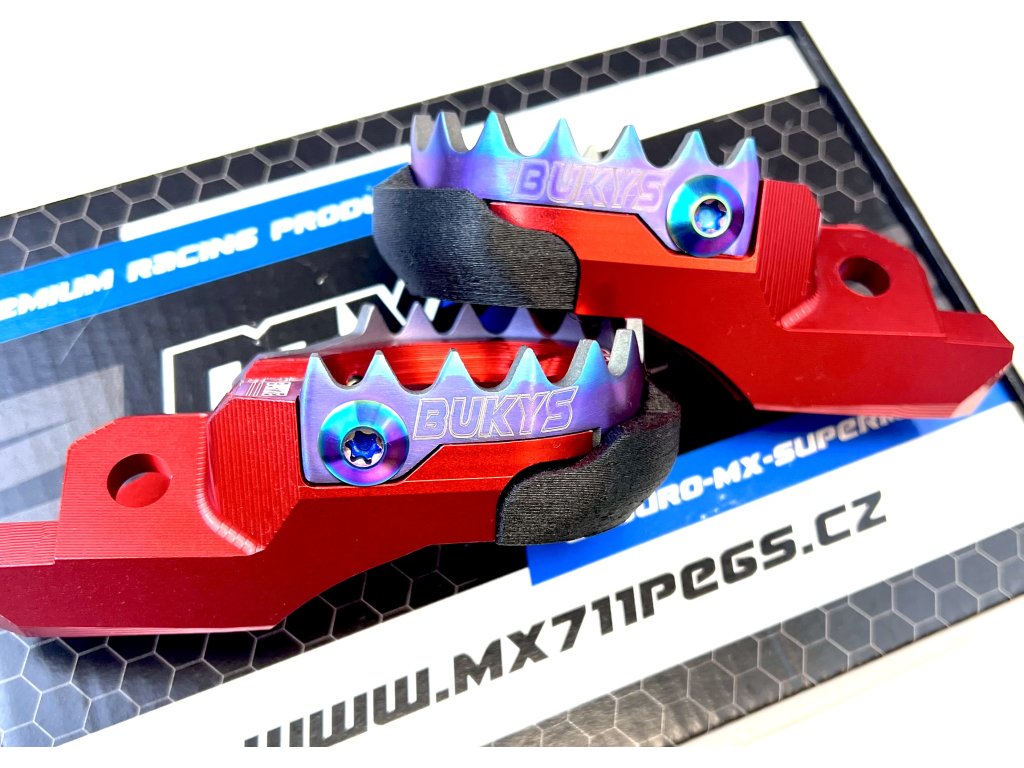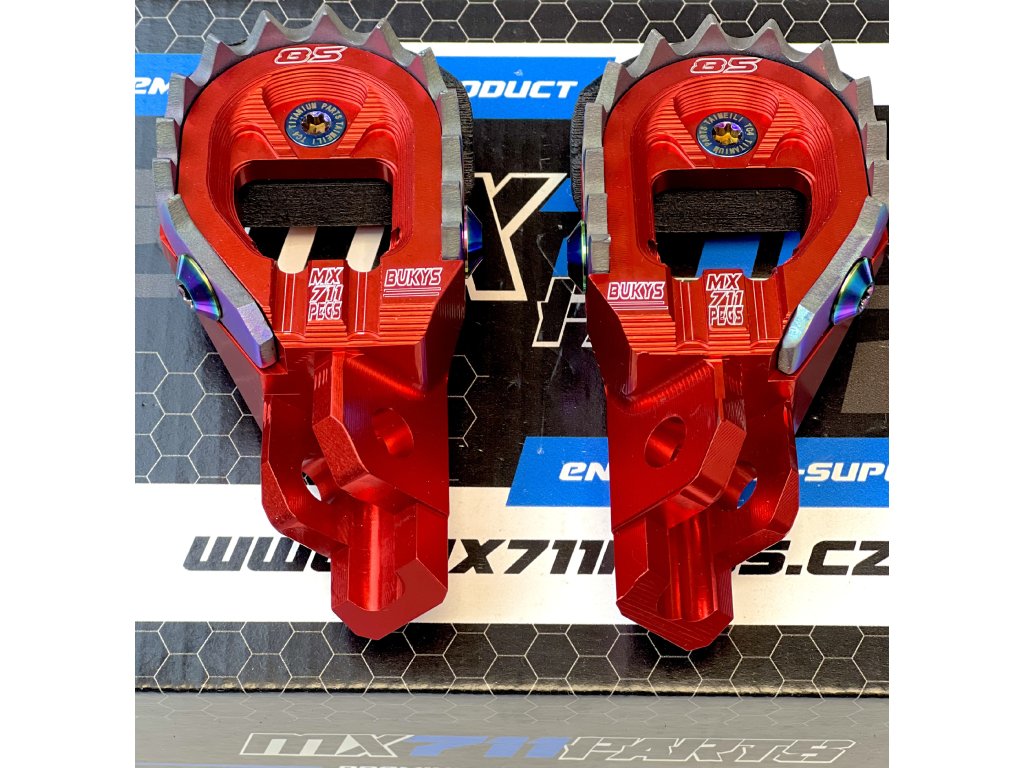 vytvořené pro maximální komfort a výkon. Tyto stupačky, inspirované zkušenostmi špičkových jezdců v supermoto a motokrosu, kombinují lehkost hliníku s odolností titanu a jsou navrženy přesně pro model Honda CR-F 250-450 (2021–2025). Vylepšená pozice stupaček poskytuje stabilitu a snížení tření při náročných zatáčkách. Titanové zuby chrání stupačky při pádu a jsou plně vyměnitelné, což zajišťuje jejich dlouhou životnost.
