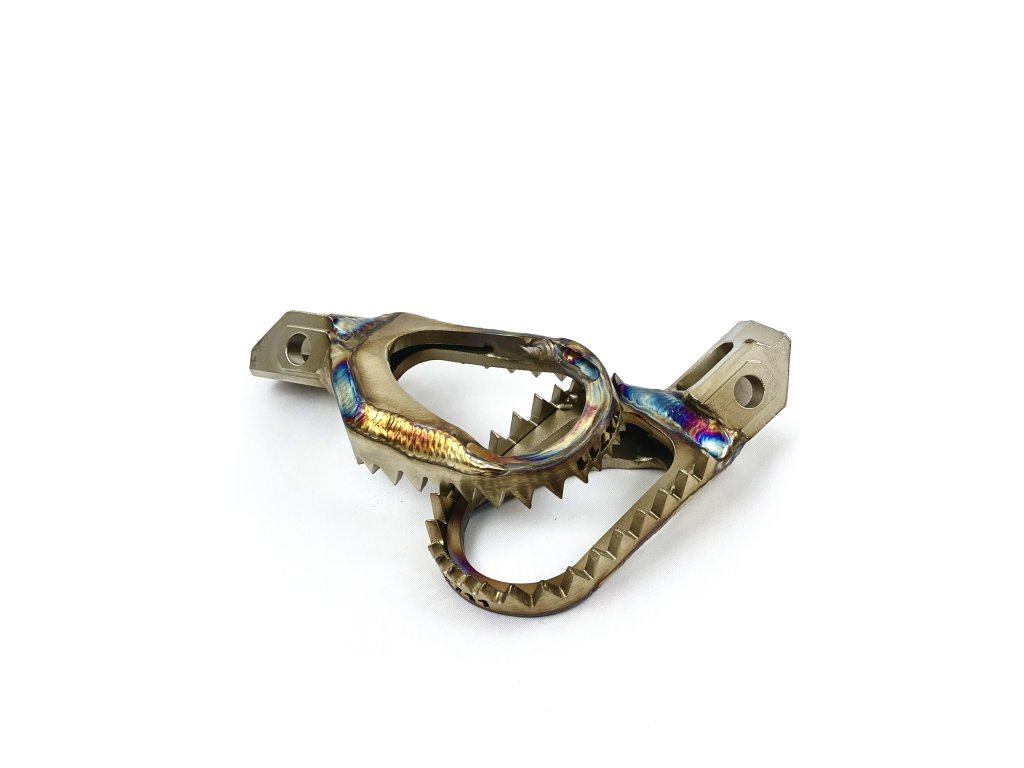 Stupačky jsou vybaveny malými zuby i na místech, kde jiné značky nechávají ploché povrchy. Krátký CNC držák umisťuje stupačky blízko rámu, což zlepšuje stabilitu a ovládání motorky. Navíc si můžete zvolit různé možnosti nastavení – stupačky lze snadno posunout dolů nebo dozadu podle vašich preferencí, stačí si vybrat z nabízených variant u produktu.