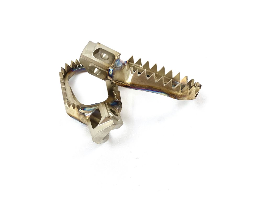 Stupačky jsou vybaveny malými zuby i na místech, kde jiné značky nechávají ploché povrchy. Krátký CNC držák umisťuje stupačky blízko rámu, což zlepšuje stabilitu a ovládání motorky. Navíc si můžete zvolit různé možnosti nastavení – stupačky lze snadno posunout dolů nebo dozadu podle vašich preferencí, stačí si vybrat z nabízených variant u produktu.