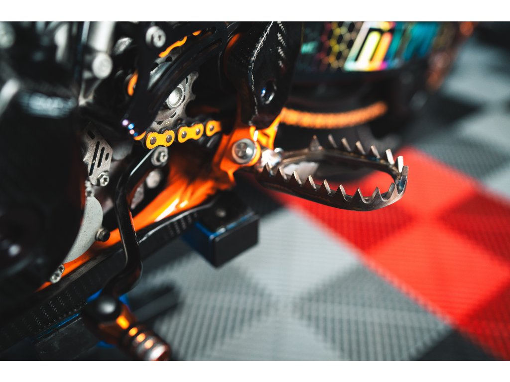 18 velkých zubů vysokých 11 mm zajišťuje extrémní grip i v náročných podmínkách. Díky velké ploše a vysokým zubům máte jistotu pevného kontaktu s motocyklem při každé situaci.