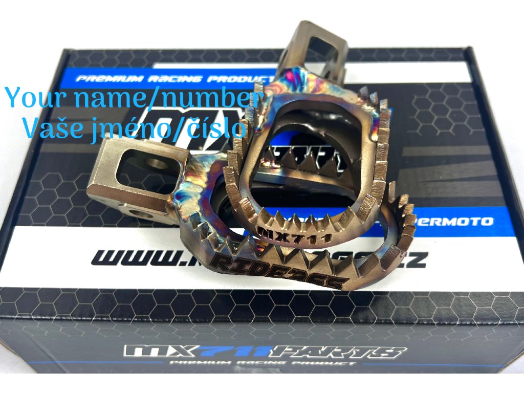 Udělejte své stupačky jedinečné! Vyberte si možnost vypálení jména a čísla na bok stupačky. Stačí zvolit variantu s logem a kontaktovat nás přes e-mail nebo Instagram.