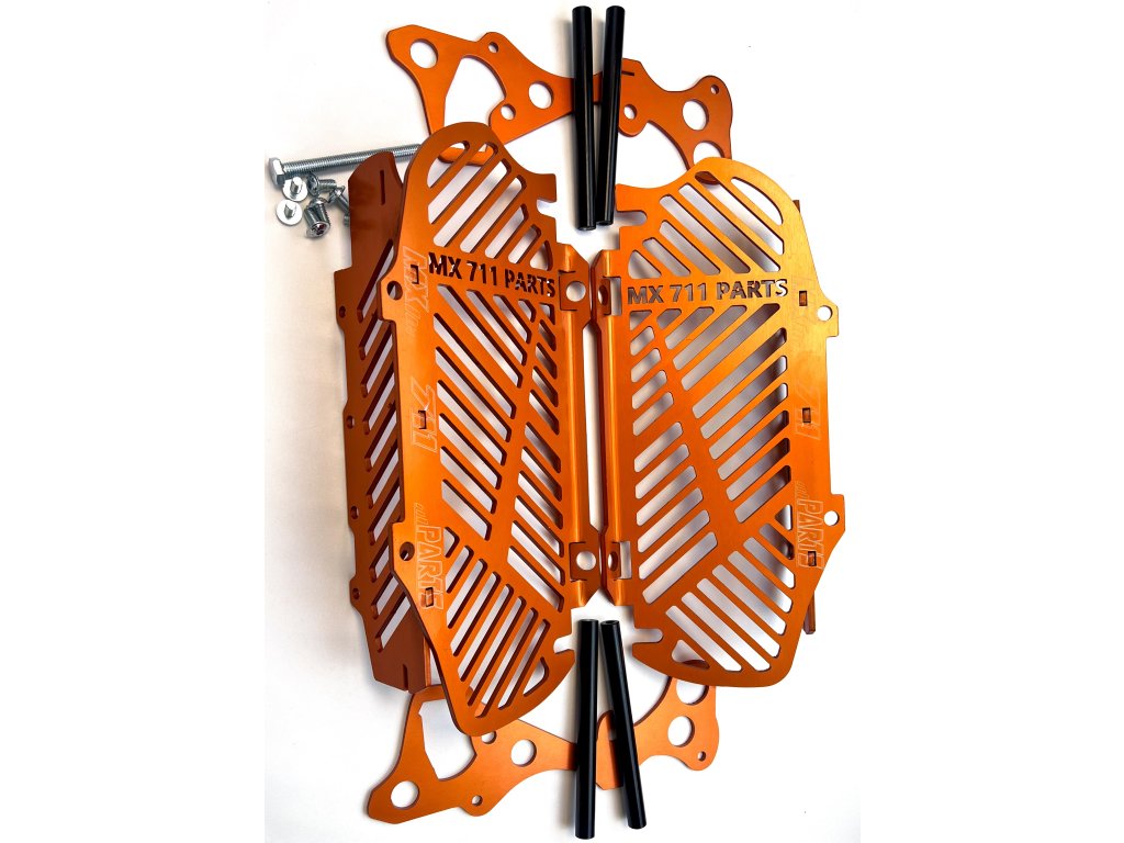 Oranžové Vyztuhy chladiče s předním krytem pro motocykly KTM, Husqvarna a GasGas (2017-2024)